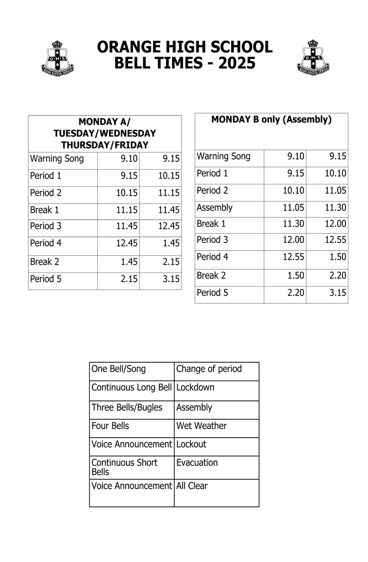 Our school day is structured around a clear timetable. We have set times for learning sessions, activities and lunch. Understanding the bell times helps students get the most out of each part of the day.